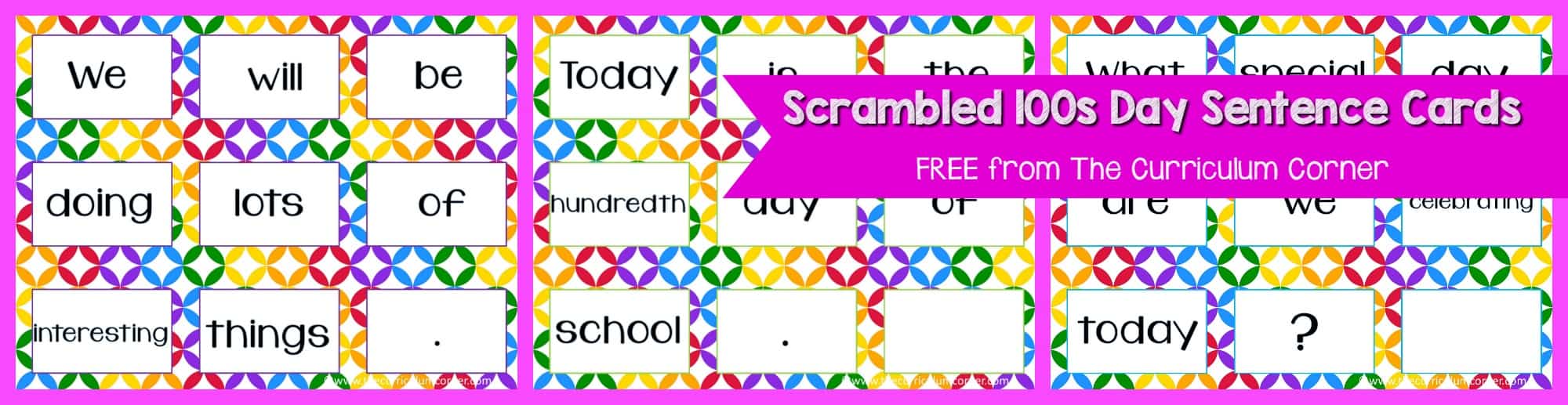 FREE 100th Day of School, Hundreds Day Collection of Resources | The Curriculum Corner | Stations | Activities | Task Cards | Scrambled Sentences
