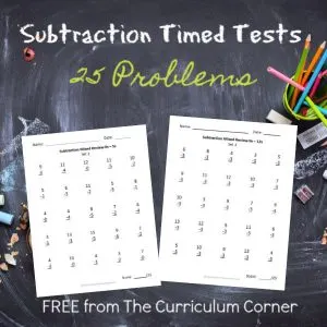 25 Subtraction Facts – Mixed Review Pages