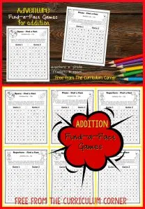 FREEB Addition Find-a-Fact practice games from The Curriculum Corner