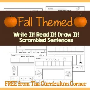 FREE! Fall themed Read It! Write It! Draw It! Scrambled sentences from The Curriculum Corner