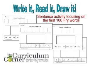 Write It, Read it, Draw it scrambled sentences from The Curriculum Corner Focuses on first 100 Fry words