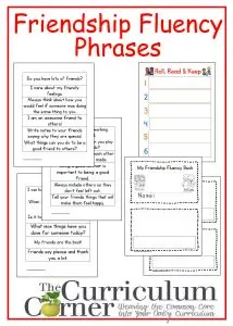 Friendship Fluency Phrases free from The Curriculum Corner with booklet and Roll, Read & Keep board game