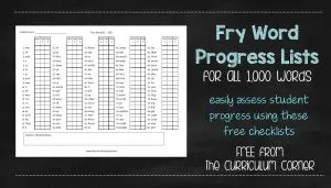 Fry Word Progress Checklists FREE from The Curriculum Corner