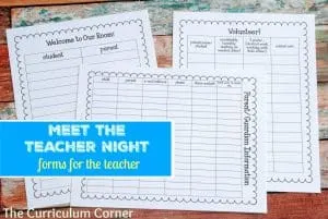 Forms for the Teacher – Meet the Teacher NIght The Curriculum Corner FREE