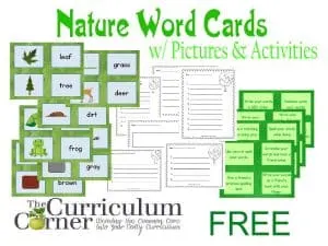 Nature Word Cards w/ Pictures and Activities Includes Recording Pages FREE from The Curriculum Corner | Word Work | Daily 5 | Literacy Centers