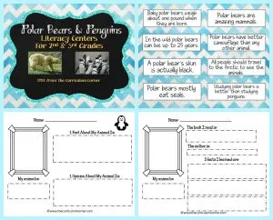 FREE Polar Bears & Penguins informational text literacy centers from The Curriculum Corner FREEBIES | Info Text