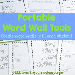 FREE! Portable Word Wall Tools for Students | word families | vocabulary map | much more! | The Curriculum Corner FREEBIE