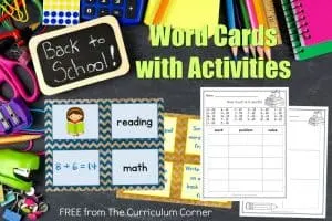 back to school word cards