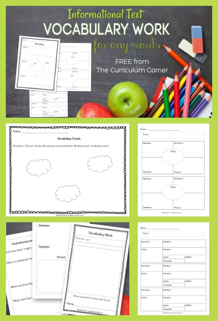 Free informational text vocabulary work from The Curriculum Corner