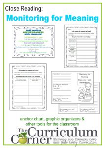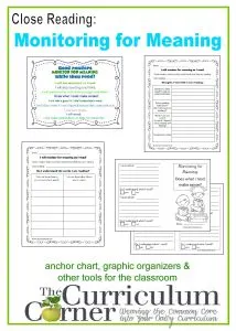 Close Reading: Monitoring for Meaning Anchor Chart & Graphic Organizers free from The Curriculum Corner